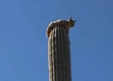 山猫竟然爬到沙漠仙人掌顶端