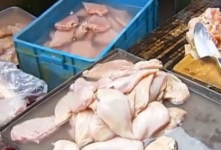 实拍触目惊心的地下加工鸡肉串