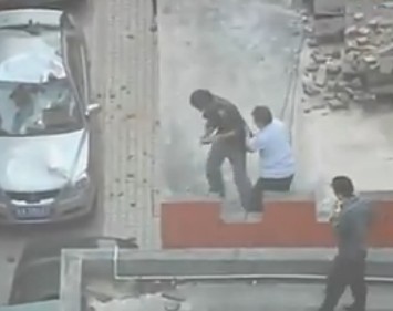 男子楼上扔砖砸车 保安推其坠楼