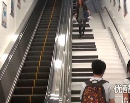 实拍全国首个"音乐楼梯"