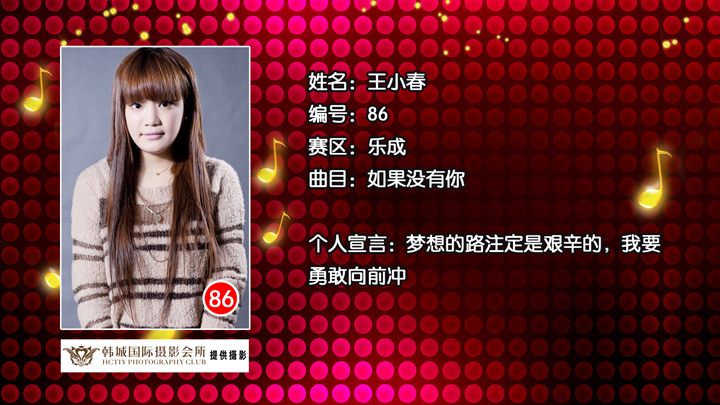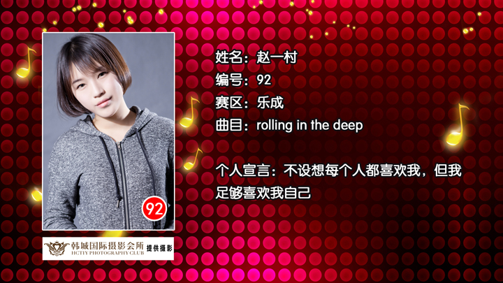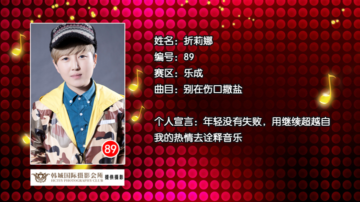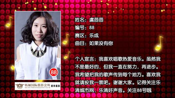 雁荡山啤酒乐清好声音 乐成片区89号选手折莉娜