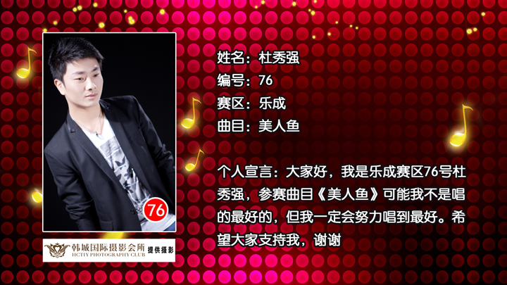 雁荡山啤酒乐清好声音 乐成片区76号选手杜秀强
