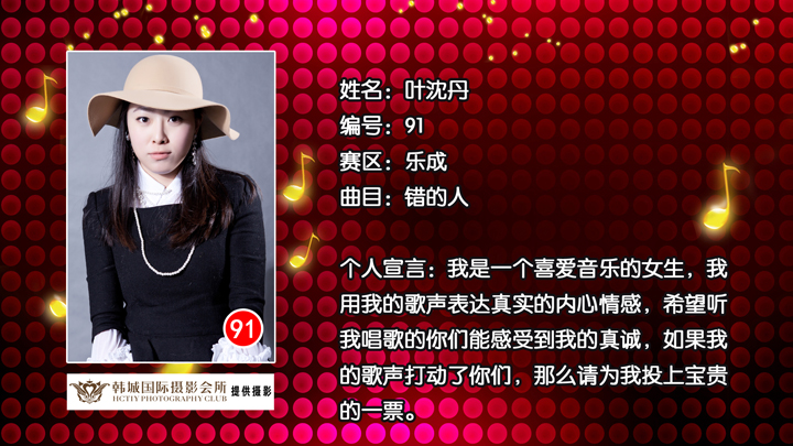雁荡山啤酒乐清好声音 乐成片区91号选手叶沈丹