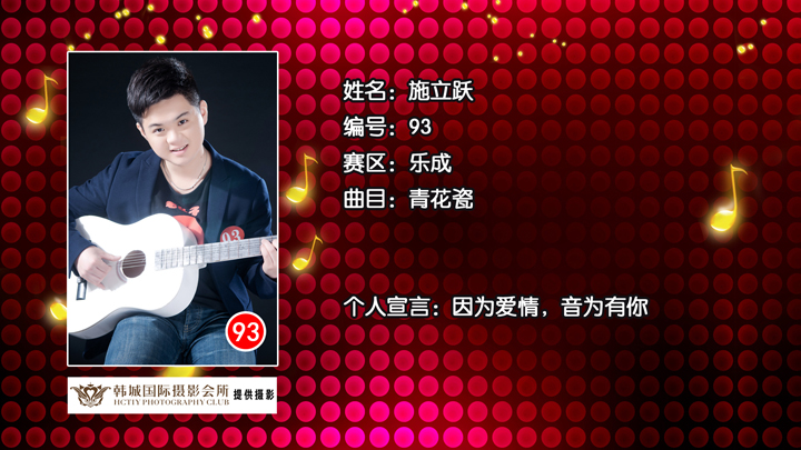 雁荡山啤酒乐清好声音 乐成片区93号选手施立跃